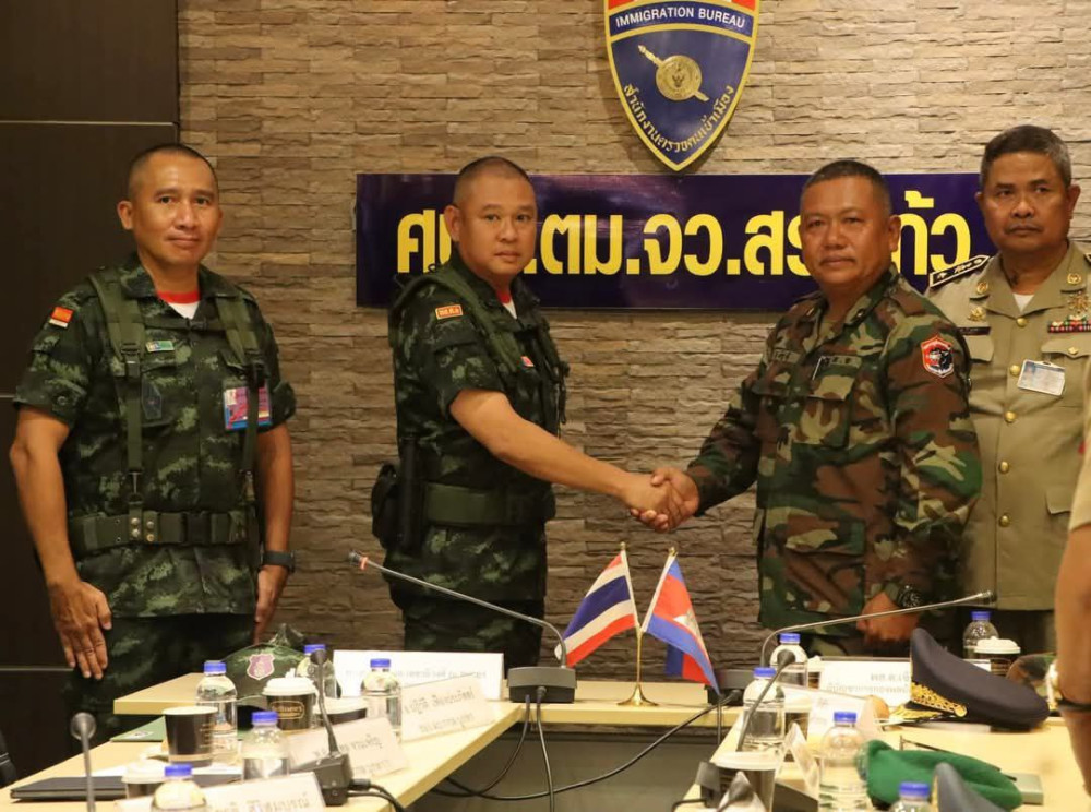 AKP បន្ទាយមានជ័យ ថ្ងៃទី២៨ ខែមីនា ឆ្នាំ២០២៥--កិច្ចប្រជុំសម្ព័ន្ធមេត្រីភាព និងពិភាក្សាការងាររវាងអង្គភាពយោធាក្នុងតំបន់នៃប្រទេសកម្ពុជា និងប្រទេសថៃ បានធ្វើឡើងក្រោមអធិបតីភាព របស់ឧត្តមសេនីយ៍ត្រី សឹង្ហ ទុំ មេបញ្ជាការកងពលតូចថ្មើរជើងលេខ៥១ (ភាគីកម្ពុជា) និងឧត្តមសេនីយ៍ត្រី ប៊េន ចាផុន ដេតឆាតិវង្ស ណ: អយុថាយ៉ា មេបញ្ជាការកងកម្លាំងបូព៌ា (ភាគីថៃ) កាលពីថ្ងៃទី២៧ ខែមីនា ឆ្នាំ២០២៥ នៅខេត្តស្រះកែវ ព្រះរាជាណាចក្រថៃ។