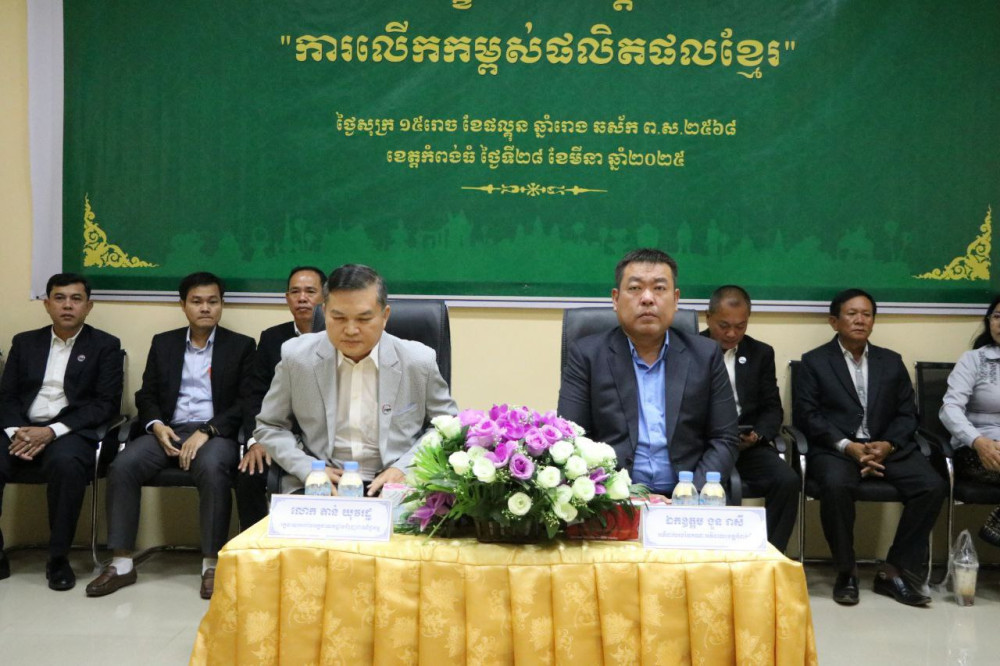 លោក តាន់ យុវរដ្ឋ អគ្គនាយករងជំរុញពាណិជ្ជកម្មនៃក្រសួងពាណិជ្ជកម្ម ឧកញ៉ាប្រធានសភាពាណិជ្ជកម្មមណ្ឌលខេត្តកំពង់ធំ-ព្រះវិហារ លោក ងួន រាសី អភិបាលរងខេត្តកំពង់ធំ ថ្នាក់ដឹកនាំមន្ទីរ អង្គភាពពាក់ព័ន្ធ ផលិតករ សិប្បករ ពាណិជ្ជករ សហគមន៍ សមាគម ក្រុមហ៊ុន និងនិស្សិតប្រមាណជាង១០០នាក់ បានអញ្ជើញចូលរួមសិក្ខាសាលា "ស្តីពីការលើកកម្ពស់ផលិតផលខ្មែរ" នៅសាលប្រជុំមន្ទីរពាណិជ្ជកម្មខេត្តកំពង់ធំនាព្រឹកថ្ងៃទី២៨ ខែមីនា ឆ្នាំ២០២៥។