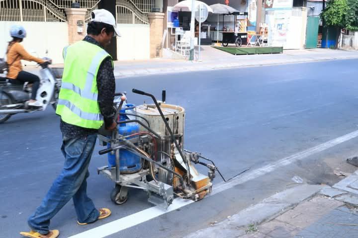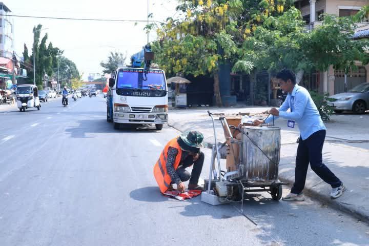 មន្ទីរសាធារណការអនុវត្តការងារគូសគំនូសសញ្ញាចរាចរណ៍លើផ្លូវ ក្នុងក្រុងតាខ្មៅ ដើម្បីចូលរួមអបអរសង្ក្រាន្តខេត្តកណ្តាល
