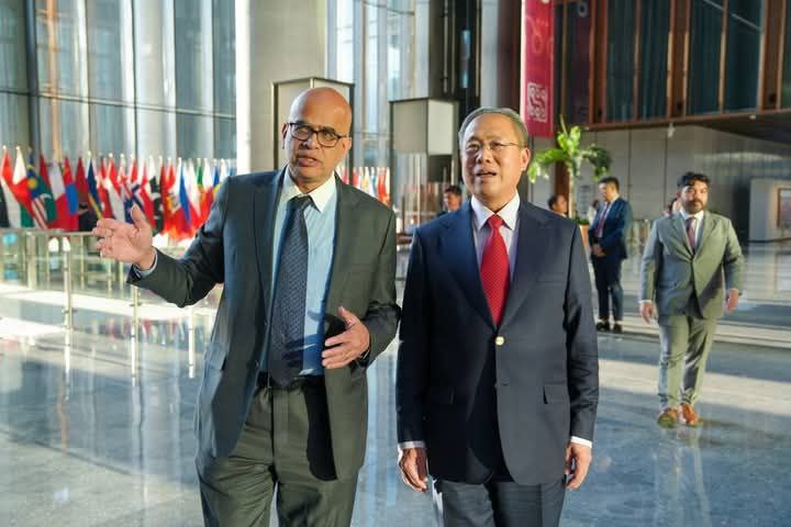 ក្នុងឱកាសដឹកនាំគណៈប្រតិភូបំពេញបេសកកម្មនៅសាធារណរដ្ឋប្រជាមានិតចិន នៅថ្ងៃទី២៨ ខែមីនា ឆ្នាំ២០២៥ ឯកឧត្តម ចាន់ ស៊ីណាត រដ្ឋលេខាធិការក្រសួងធនធានទឹក និងឧតុនិយម បានអញ្ជើញជួបប្រជុំពិភាក្សាការងារជាមួយឯកឧត្តមបណ្ឌិត Rajat Misra អគ្គនាយកនៃធនាគារវិនិយោគហេដ្ឋារចនាសម្ព័ន្ធអាស៊ី (AIIB) នៅទីស្នាក់ការកណ្តាល នាទីក្រុងប៉េកាំង ប្រទេសចិន ។