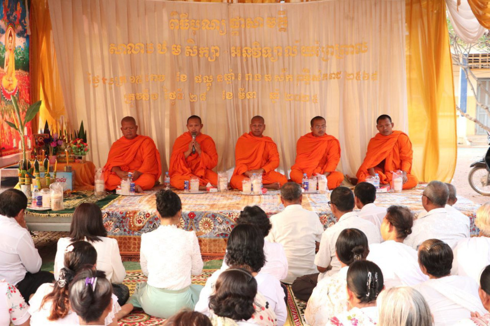 AKP កំពង់ធំ ថ្ងៃទី២៩ ខែមីនា ឆ្នាំ២០២៥--ព្រះសុខាចារ្យ ណំ សុភ័ក្រ្តា ព្រះរាជាគណៈថ្នាក់កិត្តិយសនិងជាឧត្តមទីប្រឹក្សាគណៈសង្ឃនាយក គណៈមហានិកាយជាព្រះវិរិយធម្មគុត្ត ព្រះគ្រូអនុគណស្រុកកំពង់ស្វាយនិងជាព្រះចៅអធិការវត្តមុនីរង្សីហៅ(វត្តថ្មី)លោកឧកញ៉ា តាន់ មុន្នី អនុប្រធានសភាពាណិជ្ជកម្មមណ្ឌលកំពង់ធំ-ព្រះវិហារនិងលោកជំទាវ កាំង ឃីតូច លោកយាយលោកតា លោកនាយក លោកគ្រូអ្នកគ្រូ គណៈកម្មការទ្រទ្រង់សាលានិងសិស្សានុសិស្សទាំងអស់ប្រមាណជាង៣០០នាក់បានអញ្ជើញចូលរួមពិធីបុណ្យផ្កាសាមគ្គីនៅសាលាបឋមសិក្សា-អនុវិទ្យាល័យព្រៃព្រាលស្ថិតនៅភូមិព្រៃព្រាល(ខ)ឃុំត្រពាំងឫស្សី ស្រុកកំពង់ស្វាយ ខេត្តកំពង់ធំកាលពីរសៀលថ្ងៃទី២៨ខែមីនា ឆ្នាំ២០២៥។