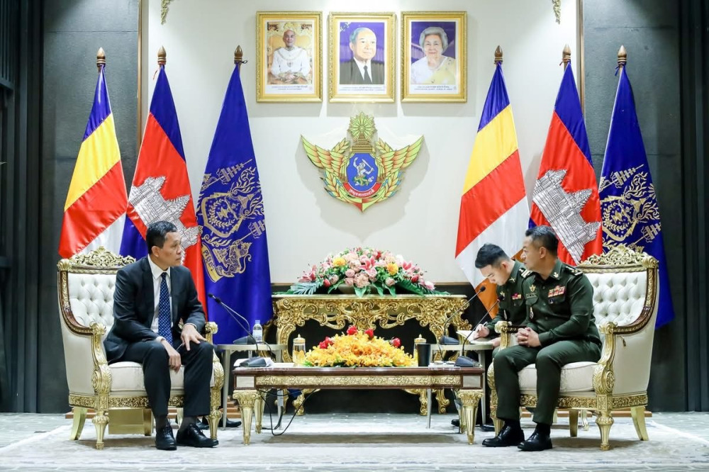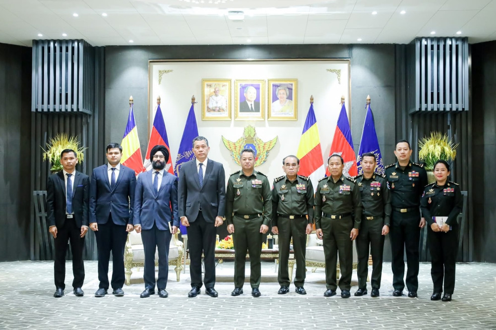 នាយឧត្តមសេនីយ៍ ទៀ សីហា ឧបនាយករដ្ឋមន្ត្រី រដ្ឋមន្ត្រីក្រសួងការពារជាតិ បានអនុញ្ញាតឱ្យឯកឧត្តម Vanlalvawna Bawitlung ឯកអគ្គរដ្ឋទូតវិសាមញ្ញ និងពេញសមត្ថភាព នៃសាធារណរដ្ឋឥណ្ឌា ប្រចាំនៅកម្ពុជា ចូលជួបសម្ដែងការគួរសម និងពិភាក្សាការងារ នៅទីស្តីការក្រសួងការពារជាតិ នាថ្ងៃទី៣១ ខែមីនា ឆ្នាំ២០២៥។