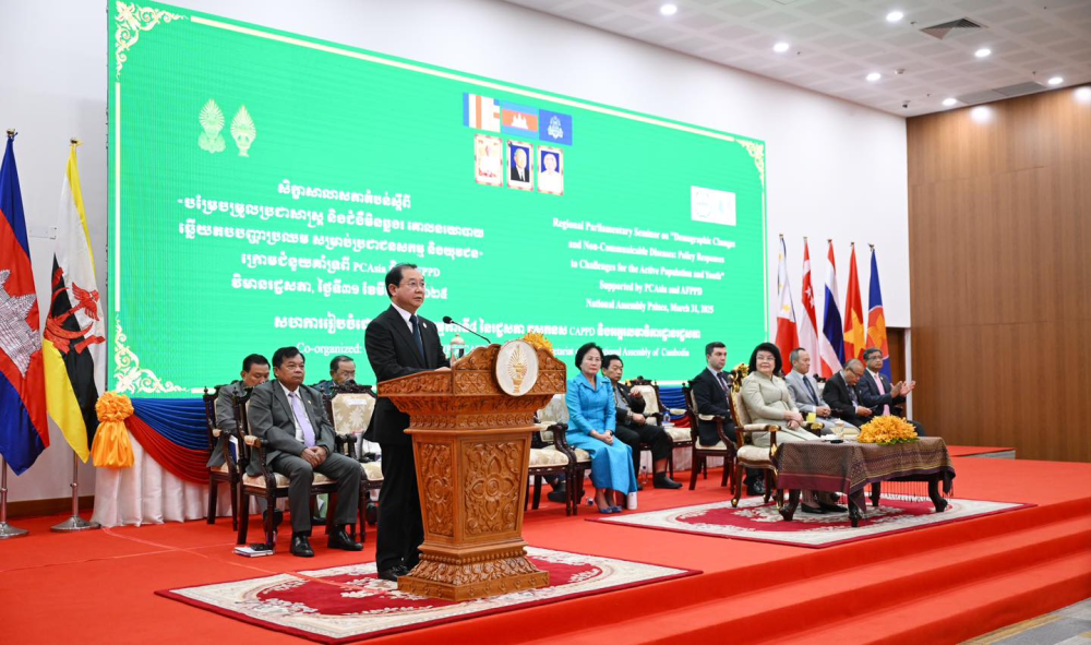 AKP ភ្នំពេញ ថ្ងៃទី០១ ខែមេសា ឆ្នាំ២០២៥-- ឯកឧត្តមសាស្រ្តាចារ្យ ឈាង រ៉ា រដ្ឋមន្រ្តីក្រសួងសុខាភិបាល បានអញ្ជើញចូលរួមក្នុងពិធីបើកសិក្ខាសាលាថ្នាក់តំបន់ស្តីពី “បម្រែបម្រួលប្រជាសាស្រ្ត និងជំងឺមិនឆ្លង” ៖ គោលនយោបាយ ឆ្លើយតបបញ្ហាប្រឈម សម្រាប់ប្រជាជនសកម្ម និងយុវជន ក្រោមអធិបតីភាពដ៏ខ្ពង់ខ្ពស់សម្តេចមហារដ្ឋសភាធិការធិបតី ឃួន សុដារី ប្រធារដ្ឋសភា នៃព្រះរាជាណាចក្រកម្ពុជា កាលពីថ្ងៃទី៣១ ខែមីនា ឆ្នាំ២០២៥។
