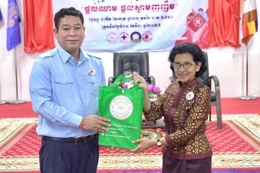 AKP ភ្នំពេញ ថ្ងៃទី០១ ខែមេសា ឆ្នាំ២០២៥-- លោកជំទាវ ពុំ ចន្ទីនី អគ្គលេខាធិការកាកបាទក្រហមកម្ពុជា អញ្ជើញជាអធិបតីក្នុងយុទ្ធនាការបរិច្ចាគឈាម ក្រោមប្រធានបទ "ផ្តល់ឈាមផ្តល់ស្នាមញញឹម" កាលពីថ្ងៃទី៣១ ខែមីនា ឆ្នាំ២០២៥ ដោយមានការអញ្ជើញចូលរួមពីឯកឧត្តមបណ្ឌិត អ៊ុំ រតនា សាកលវិទ្យាធិការរង តំណាងលោកជំទាវ ឃឹម រ៉ានី សាកលវិទ្យាធិការ និងជាប្រធានកិត្តិយសក្លឹបយុវជនកាកបាទក្រហមកម្ពុជា ប្រចាំសាកលវិទ្យាល័យកម្ពុជា លោកស្រីវេជ្ជ. ឯកទេស ហេង សុខចំរើន អនុប្រធានមជ្ឈមណ្ឌលជាតិផ្តល់ឈាមនិងអ្នកចូលរួមបរិច្ចាគឈាមចំនួន ១០០នាក់ ដោយទទួលបានឈាមចំនួន ៧៦ប្លោក ដែលក្នុងនោះមានបុរស៣៥នាក់ និងនារី ៤១នាក់ នៅសាលបណ្ឌិតហាន់ដានៃសាកលវិទ្យាល័យកម្ពុជា។