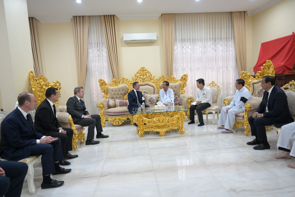 ក្នុងឱកាសនេះដែរ សម្ដេចមហាបវរធិបតី ហ៊ុន ម៉ាណែត នាយករដ្ឋមន្ត្រីនៃព្រះរាជាណាចក្រកម្ពុជា បានថ្លែងអំណរគុណចំពោះព្រះរាជទាយាទ និងគណៈប្រតិភូទាំងអស់ដែលបានអញ្ជើញមកបំពេញទស្សនកិច្ចនៅកម្ពុជា និងបានចូលរួមរំលែកទុក្ខចំពោះក្រុមគ្រួសារសម្ដេចនាពេលនេះ ។សម្តេចធីបតី បានបញ្ជាក់នូវក្តីរីករាយបន្តពង្រឹង និងពង្រីកកិច្ចសហប្រតិបត្តិការ និងទំនាក់ទំនងទុកចិត្តគ្នារវាងប្រទេសទាំងពីរឱ្យកាន់តែខ្លាំងក្លាថែមទៀត៕