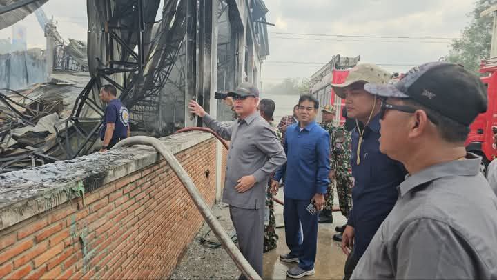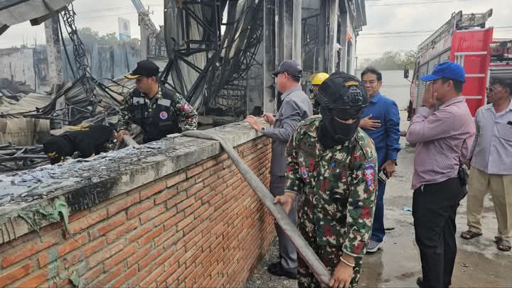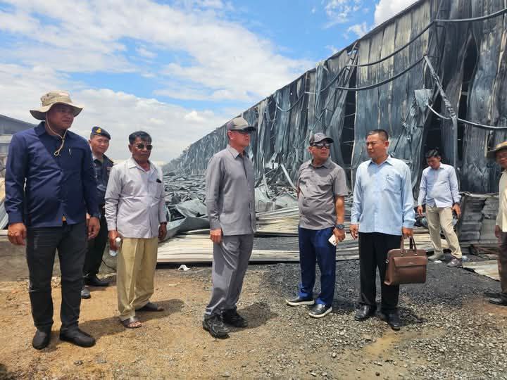 ឯកឧត្តម គួច ចំរើន ចុះពិនិត្យទីតាំងឆេះឃ្លាំងស្តុកសម្ភារជ័រធ្វើស័ង្កសី ឃុំពើក ស្រុកអង្គស្នួល
