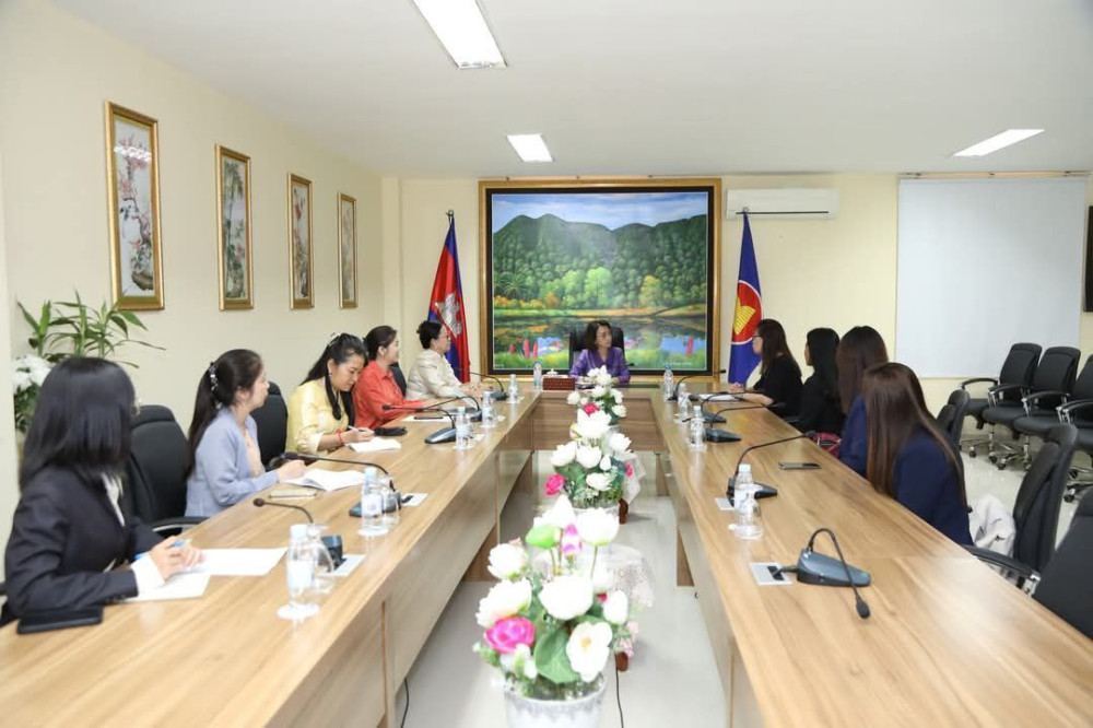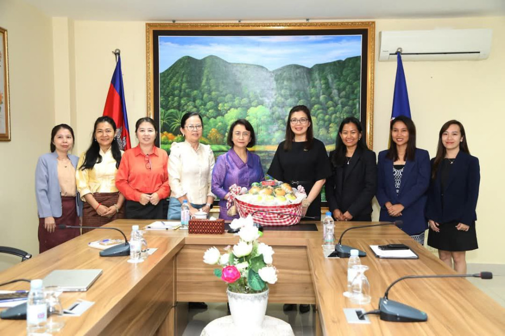 លោកស្រី Jane Tay នាយិកាក្រុមហ៊ុនធានារ៉ាប់រងអាយុជីវិត អេអាយអេ ប្រចាំប្រទេសកម្ពុជា ចូលជួបសម្ដែងការគួរសម និងពិភាក្សាការងារជាមួយលោកជំទាវកត្តិបណ្ឌិត អ៊ឹង កន្ថាផាវី រដ្ឋមន្រ្តីក្រសួងកិច្ចការនារី នៅទីស្តីការក្រសួងកិច្ចការនារី កាលពីរសៀលថ្ងៃទី០១ ខែមេសា ឆ្នាំ២០២៥។