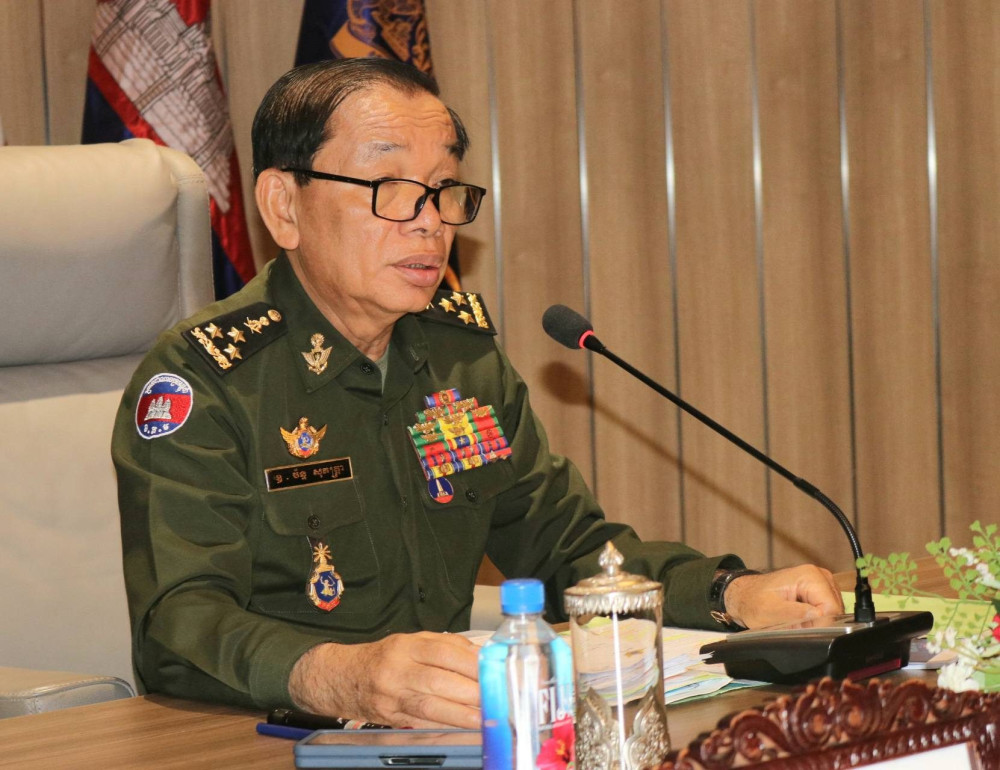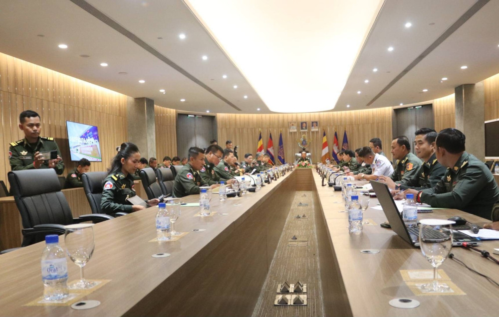 AKPភ្នំពេញថ្ងៃទី៣ខែមេសាឆ្នាំ២០២៥ -- ឯកឧត្តម ឧត្តមសេនីយ៍ឯក ច័ន្ទ សុភក្ត្រា រដ្ឋលេខាធិការ ក្រសួងការពារជាតិ និងជា ប្រធានក្រុមការងារដឹកនាំ និងជំរុញការអនុវត្តសេចក្តីណែនាំលេខ០០៣ ក្រសួងការពារជាតិ បានអញ្ជើញបើកកិច្ចប្រជុំ ដើម្បីពិនិត្យមើលវឌ្ឍនភាពក្រុមការងារដឹកនាំ និងជំរុញការអនុវត្តសេចក្តីណែនាំលេខ០០៣ ស្ដីពីវិធានការពង្រឹងអនុវត្តន៍ លក្ខន្តិកៈទូទៅចំពោះយោធិន បទវិន័យទូទៅ និងលំហាត់របៀប នៃកងយោធពលខេមរភូមិន្ទ និងសេចក្តីសម្រេចបង្កើតក្រុមការងារនេះ កាលពីថ្ងៃទី០២ ខែមេសា ឆ្នាំ២០២៥ នៅសាលប្រជុំ ទីស្ដីការក្រសួងការពារជាតិ។