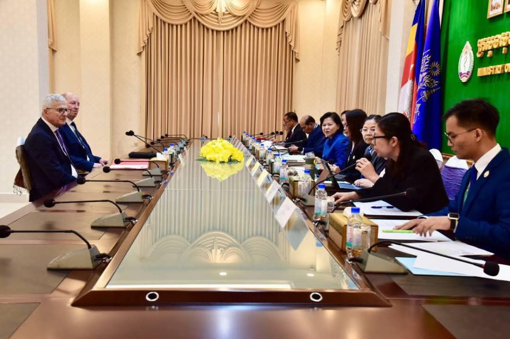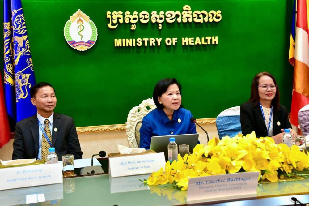 AKP ភ្នំពេញ ថ្ងៃទី០៥ ខែមេសា ឆ្នាំ២០២៥ -- លោកជំទាវសាស្ត្រាចារ្យ អ៊ឹម សិទ្ធិការ្យ រដ្ឋលេខាធិការក្រសួងសុខាភិបាល បានទទួលជួបពិភាក្សាការងារជាមួយប្រតិភូក្រុមហ៊ុន Lowenstien Medical Hospital GmbH ដើម្បីពិភាក្សាអំពីកិច្ចសហប្រតិបត្តិការ និងវិនិយោគ ក្នុងការពង្រឹងសមត្ថភាព ផ្នែកប្រពោធនកម្ម និងសង្គ្រោះជំងឺធ្ងន់ដល់ទារកទើបកើត (NICU) នៅកម្ពុជា កាលពីពេលថ្មីៗនេះ នៅទីស្ដីការក្រសួង។