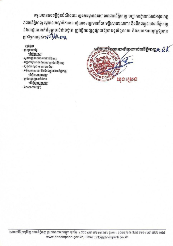 ដូច្នេះ សូមបងប្អូនប្រជាពលរដ្ឋដែលធ្វើដំណើរឆ្លងកាត់តាមកំណាត់មហាវិថីខាងលើយោគយល់អធ្យាស្រ័យ និងបញ្ចៀសការធ្វើដំណើរឆ្លងកាត់ទីតាំងប្រារព្ធពិធីតាមកាលបរិច្ឆេទខាងលើដោយ អនុគ្រោះ។ ផុតរយៈពេលហាមឃាត់បណ្តោះអាសន្ននេះ រដ្ឋបាលរាជធានីភ្នំពេញនឹងបើកឱ្យចរាចរជាធម្មតាវិញ៕