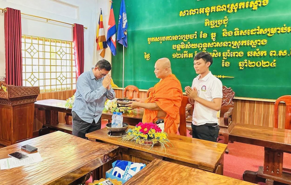 AKP កំពង់ធំ ថ្ងៃទី០៧ ខែមេសា ឆ្នាំ២០២៥-- ឯកឧត្តម ចាន់ យុត្ថា រដ្ឋលេខាធិការក្រសួងធនធានទឹក និងឧតុនិយមប្រធានក្រុមការងារចុះមូលដ្ឋានឃុំប្រឡាយ និងឃុំពពក តំណាងដ៏ខ្ពង់ខ្ពស់ឯកឧត្តម ថោ ជេដ្ឋា រដ្ឋមន្ត្រីក្រសួងធនធានទឹក និងឧតុនិយម និងជាប្រធានក្រុមការងារចុះមូលដ្ឋានស្រុកស្ទោង បានអញ្ជើញប្រគេន និងជូនបច្ច័យចំនួន៣៦លានរៀលដល់គណៈកម្មការរៀបចំចាត់ចែងក្នុងកម្មវិធីសង្ក្រាន្តឆ្នាំថ្មី ក្នុងឱកាសអញ្ជើញមកពិនិត្យទីតាំងរៀបចំសង្ក្រាន្តនៅវត្តឃ្លាំងខ្មូត ព្រមទាំងបានធ្វើគារវកិច្ចចំពោះព្រះគ្រូចៅអធិការវត្តឃ្លាំងខ្មូត និងជួបសំណេះសំណាលជាមួយក្រុមការងារការរៀបចំសង្ក្រាន្ត អាជ្ញាធរមូលដ្ឋានឃុំប្រឡាយនិងក្រុមការងារស.ស.យ.កឃុំប្រឡាយ កាលពីថ្ងៃទី០៦ ខែមេសា ឆ្នាំ២០២៥។