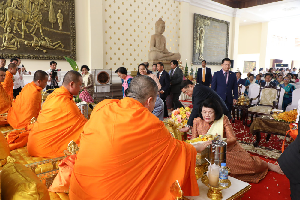 AKP ភ្នំពេញ ថ្ងៃទី៧ ខែមេសា ឆ្នាំ២០២៥ -- ខណៈដែលថ្ងៃនៃពិធីបុណ្យចូលឆ្នាំថ្មីប្រពៃណីជាតិ ឆ្នាំម្សាញ់ សប្តស័ក ព.ស.២៥៦៩ នឹងឈានចូលមកដល់ឆាប់ៗនេះ សម្តេចមហារដ្ឋសភាធិការធិបតី ឃួន សុដារី ប្រធានរដ្ឋសភានៃព្រះរាជាណាចក្រកម្ពុជា នៅព្រឹកថ្ងៃចន្ទ ១០កើត ខែចេត្រ ត្រូវនឹងថ្ងៃទី៧ ខែមេសា ឆ្នាំ២០២៥ បានអញ្ជើញជាអធិបតីភាពដ៏ខ្ពង់ខ្ពស់ក្នុងពិធីសូត្រមន្ត រាប់បាត្រព្រះសង្ឃ បង្សុកូល តាមគន្លងព្រះពុទ្ធសាសនា ដើម្បីអបអរសារទរឆ្នាំថ្មីដែលនឹងឈានចូលមកដល់ក្នុងពេលខាងមុខឆាប់ៗនេះ។