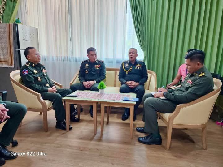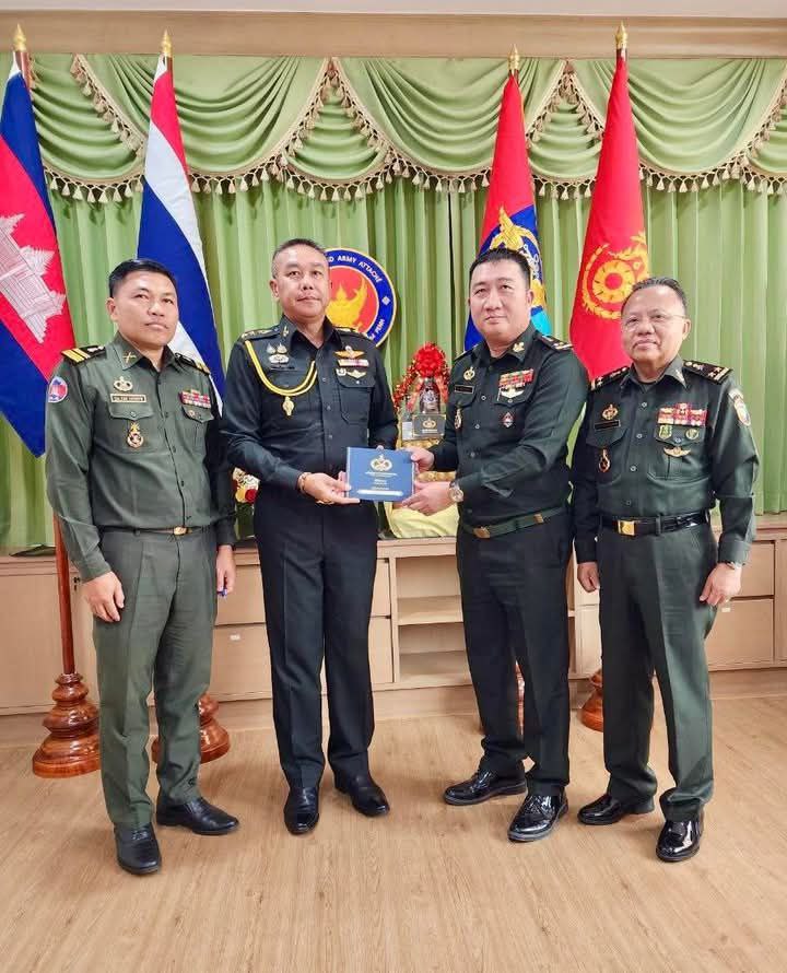 AKP ភ្នំពេញ ថ្ងៃទី០៧ ខែមេសា ឆ្នាំ២០២៥ -- ឯកឧត្តម ឧត្តមសេនីយ៍ទោ ហេង មករា មេបញ្ជាការរងកងទ័ពជើងគោក បានដឹកនាំប្រតិភូបញ្ជាការដ្ឋានកងទ័ពជើងគោក ជូនពរឆ្នាំថ្មីប្រពៃណីជនជាតិថៃដល់ស្ថានអនុព័ន្ធយោធាថៃប្រចាំព្រះរាជាណាចក្រកម្ពុជា នារសៀលថ្ងៃទី០៧ ខែមេសា ឆ្នាំ២០២៥។