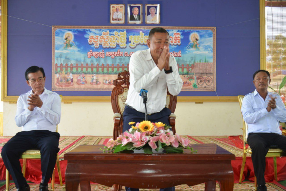 AKP កំពង់ឆ្នាំង ថ្ងៃទី០៩ ខែមេសា ឆ្នាំ ២០២៥-- ឯកឧត្តមបណ្ឌិត ហ៊ឺ វីរ: តំណាងរាស្ត្រមណ្ឌលកំពង់ឆ្នាំង បានអញ្ជើញចូលរួមក្នុងពិធីសំណេះសំណាល និងនាំយកអំណោយដ៏ថ្លៃថ្លារបស់សម្តេចមហាបវរធិបតី ហ៊ុន ម៉ាណែត នាយករដ្ឋមន្ត្រីនៃព្រះរាជាណាចក្រកម្ពុជា និងលោកជំទាវបណ្ឌិត ផ្តល់ជូននិវត្តន៍ជនស្រុកកំពង់ត្រឡាច ខេត្តកំពង់ឆ្នាំង ក្នុងឱកាសបុណ្យចូលឆ្នាំថ្មីប្រពៃណីជាតិខ្មែរ កាលពីថ្ងៃទី០៨ ខែមេសា ឆ្នាំ២០២៥ ដោយមានការអញ្ជើញចូលរួមពី លោក វន ស៊ីផា អភិបាលស្រុកកំពង់ត្រឡាច លោក លោកស្រី មន្ត្រីអមដំណើរ និងគ្រួសារនិវត្តន៍ជនជាច្រើននាក់ផងដែរ។