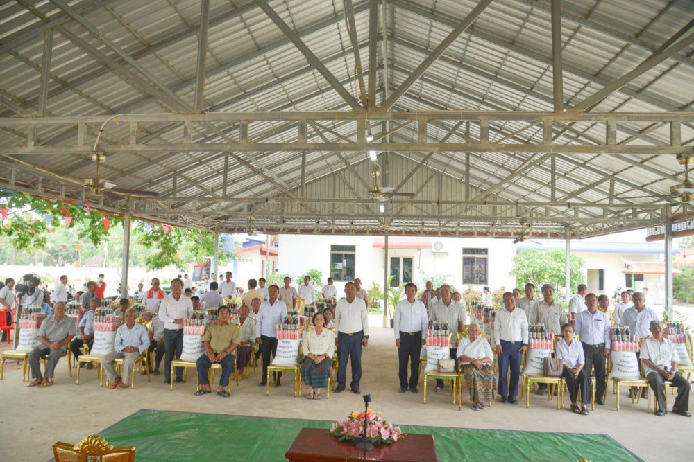សូមជម្រាបជូនថា គ្រូសារនិវត្តន៍ជនចំនួន៤៦នាក់ ក្នុងម្នាក់ទទួលបានអង្ករ២៥គីឡូក្រាម ភេសជ្ជៈកូកាកូឡា១កេស ត្រីខ១យួរ ទឹកស៊ីអីវ១យួរ ទឹកត្រី១យួរ និងថវិកា៥ម៉ឺនរៀលផងដែរ៕