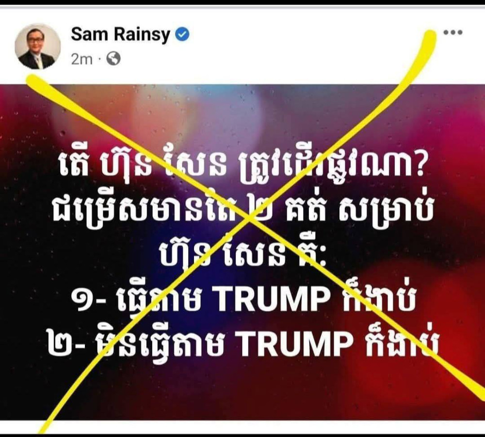 AKP ភ្នំពេញ ថ្ងៃទី១០ ខែមេសា ឆ្នាំ២០២៥–នៅពេលដែលមនុស្សទូទាំងពិភពលោក ទាំងថ្នាក់ដឹកនាំ ទាំងអ្នកនយោបាយ ទាំងប្រជាពលរដ្ឋ រាប់ទាំងកម្ពុជាយើងផង កំពុងនាំគ្នាគិតរិះរកមធ្យោបាយដោះស្រាយបញ្ហាដើម្បីការពារផលប្រយោជន៍ជាតិរបស់ខ្លួនពាក់ព័ន្ធជាមួយការដំឡើងអត្រាពន្ធរបស់សហរដ្ឋអាម៉េរិក ចុះចម្លែកអីតែបុគ្គលម្នាក់នេះខុសគេខុសឯងបែរជាបន់ស្រន់ឱ្យប្រទេសជាតិនិងប្រជាជនរបស់ខ្លួន «ស្លា.ប់» ទៅវិញ។