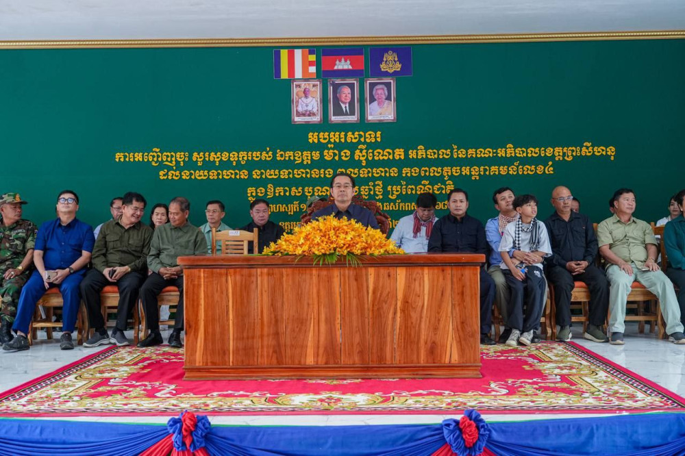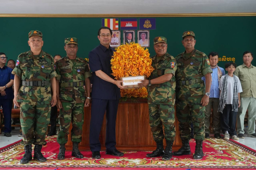 AKP ព្រះសីហនុ ថ្ងៃទី១០ ខែមេសា ឆ្នាំ២០២៥-- ឯកឧត្តម ម៉ាង ស៊ីណេត អភិបាលនៃគណ:អភិបាលខេត្តព្រះសីហនុ បានដឹកនាំគណ:ប្រតិភូខេត្ត ក្រុង ស្រុក មន្ទីរ អង្គភាព មន្ត្រីរាជការ នៃរដ្ឋបាលខេត្តព្រះសីហនុ អញ្ជើញចុះសួរសុខទុក្ខកងទ័ព គ្រួសារកងទ័ពនៃកងពលតូចអន្តរាគមន៍លេខ៤ ចំណុះកងពលធំលេខ២ ដែលឈរជើងនៅភូមិអណ្តូងបរ ឃុំបេង ស្រុកបន្ទាយអំពិល ខេត្តឧត្តរមានជ័យ នៅព្រឹកថ្ងៃព្រហស្បតិ៍ ទី១០ ខែមេសា ឆ្នាំ២០២៥។