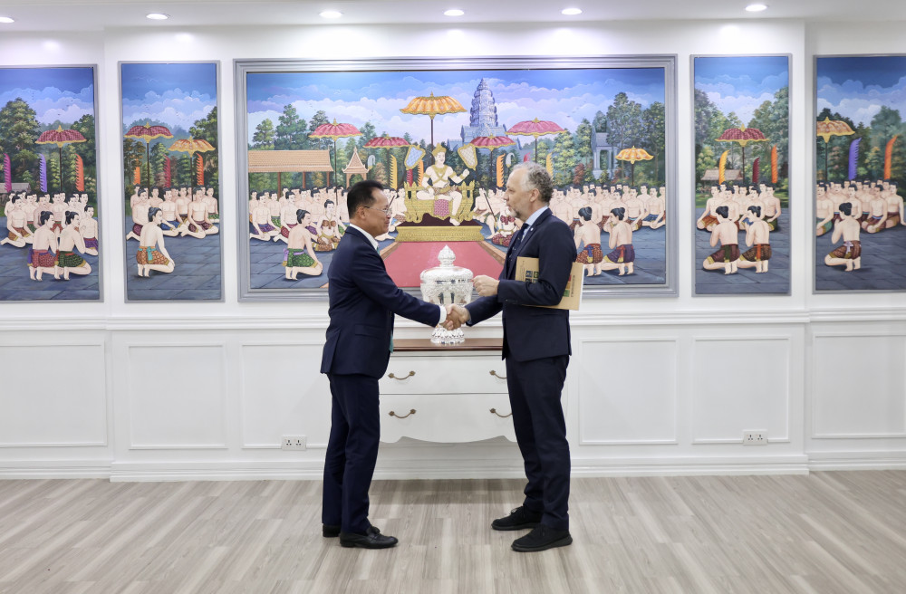 ឯកឧត្តម Joseph Scheuer អ្នកសម្របសម្រួលអង្គការសហប្រជាជាតិប្រចាំនៅកម្ពុជា ក្នុងឱកាសទទួលបានការអនុញ្ញាតទទួលជួបនិងពិភាក្សាការងារជាមួយ ឯកឧត្តមបណ្ឌិត អ៊ាង សុផល្លែត រដ្ឋមន្ត្រីក្រសួងបរិស្ថាន នៅទីស្តីការក្រសួងបរិស្ថាន នារសៀលថ្ងៃទី១០ ខែមេសា ឆ្នាំ២០២៥ បានវាយតម្លៃខ្ពស់ចំពោះសមិទ្ធផលនានារបស់រាជរដ្ឋាភិបាលកម្ពុជា ជាពិសេសក្នុងការគ្រប់គ្រងធនធានធម្មជាតិនិងបរិស្ថាន ដើម្បីឆ្លើយតបនឹងការប្រែប្រួលអាកាសធាតុ និងការអភិវឌ្ឍប្រកបដោយចីរភាព។ ក្នុងជំនួបពិភាក្សាការងារនេះ ឯកឧត្តម Joseph Scheuer បានបង្ហាញពីការប្តេជ្ញាចិត្តរបស់អង្គការសហប្រជាជាតិ បន្តពង្រឹងកិច្ចសហប្រតិបត្តិការរួមគ្នា ក្នុងការលើកកម្ពស់ជីវភាពរស់នៅរបស់ប្រជាពលរដ្ឋកម្ពុជា កឺការឆ្លើយតបប្រកបដោយប្រសិទ្ធភាពដល់ការអភិវឌ្ឍន៍ដោយចីរភាព។