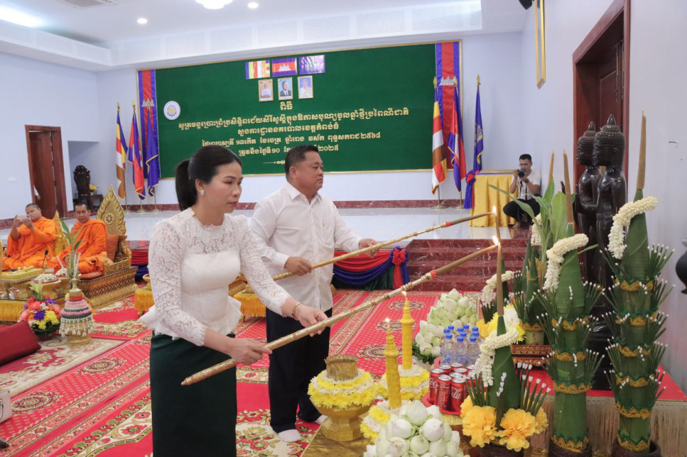 AKP កំពង់ធំ ថ្ងៃទី១១ ខែមេសា ឆ្នាំ២០២៥-- ឧត្តមសេនីយ៍ទោ ហេង សុផល ស្នងការនគរបាលខេត្ត និងលោកស្រី អៀង លឹមចេង កាលពីរសៀលថ្ងៃទី១០ ខែមេសា ឆ្នាំ២០២៥ បានដឹកនាំកងកម្លាំងស្នងការដ្ឋាននគរបាលខេត្តកំពង់ធំនិមន្តព្រះសង្ឃ សូត្រមន្តចម្រើនព្រះបរិត្តប្រោះព្រំសុំសេចក្តីសុខ សេចក្តីចម្រើនក្នុងឱកាសបុណ្យចូលឆ្នាំថ្មីប្រពៃណីជាតិខ្មែរឆ្នាំម្សាញ់សប្តស័កព.ស២៥៦៩ និងបានឧទ្ទិកុសលផលបុណ្យជូនដល់ដួងវិញ្ញាណក្ខន្ធបុព្វបុរសខ្មែរដែលបានលះបង់សាច់ស្រស់ឈាមស្រស់ពលីសកម្មដើម្បីបុព្វហេតុជាតិមាតុភូមិរហូតប្រទេសជាតិទទួលបានសន្តិភាពយ៉ាងពេញលេញនាពេលបច្ចុប្បន្ន ព្រមទាំងបានបួងសួងដល់វត្ថុសក្តិសិទ្ធិក្នុងលោកជាសេសទេវតាឆ្នាំថ្មីសូមបីបាច់ថែរក្សាអភិបាលប្រោះព្រំដល់ថ្នាក់ដឹកនាំមន្ត្រីរាជការកងកម្លាំងប្រដាប់អាវុធប្រជាពលរដ្ឋទូទាំងព្រះរាជាណាចក្រកម្ពុជាសូមទទួលបានសុខភាពល្អបរិបូណ៌ថាមពលខ្លាំងក្លាបញ្ញាវាងវៃចៀសផុតពីជំងឺកាចសាហាវដើម្បីបន្តចូលរួមកសាងអភិវឌ្ឍប្រទេសជាតិឱ្យកាន់តែមានភាពរីកចម្រើនសម្បូរសប្បាយបន្ថែមទៀត។