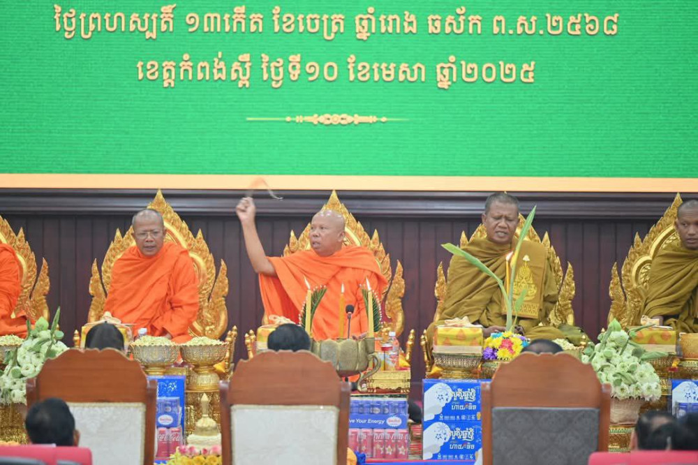 AKP កំពង់ស្ពឺ ថ្ងៃទី១១ ខែមេសា ឆ្នាំ២០២៥-- រដ្ឋបាលខេត្តកំពង់ស្ពឺបានប្រារព្វពិធីសូត្រមន្តចម្រើនព្រះបរិត្ត ប្រសិទ្ធិពរជ័យ សិរីមង្គល ជាកិច្ចជូនដំណើរឆ្នាំចាស់ និងទទួលអំណរសាទរឆ្នាំថ្មីប្រពៃណីជាតិខ្មែរ ឆ្នាំម្សាញ់ សប្តស័ក ព.ស.២៥៦៩ ក្នុងស្មារតីមហាគ្រួសារ នៅបរិវេណសាលាខេត្តនាថ្ងៃទី១០ ខែមេសា ឆ្នាំ២០២៥ ក្រោមអធិបតីភាពឯកឧត្តម យឹម សុខុម ប្រធានក្រុមប្រឹក្សាខេត្ត ឯកឧត្ត មបណ្ឌិត ជាម ច័ន្ទសោភ័ណ អភិបាលនៃគណៈអភិបាលខេត្តកំពង់ស្ពឺ និងលោកជំទាវ និងមានការចូលរួមពីឯកឧត្តម លោកជំទាវជាថ្នាក់ដឹកនាំ ព្រមជាមួយមន្ត្រីរាជការ មន្ទីរ អង្គភាពជុំវិញខេត្តផងដែរ។