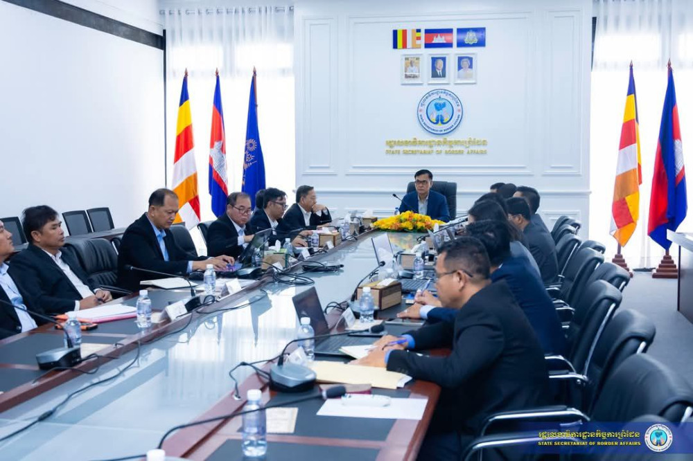 AKP ភ្នំពេញ ថ្ងៃទី១១ ខែមេសា ឆ្នាំ២០២៥ -- នៅសាលប្រជុំធំនៃទីស្តីការរដ្ឋលេខាធិការដ្ឋានកិច្ចការព្រំដែន ឯកឧត្តម ឡាំ ជា រដ្ឋមន្ត្រីទទួលបន្ទុករដ្ឋលេខាធិការដ្ឋានកិច្ចការព្រំដែន បានអញ្ជើញជាអធិបតីដ៏ខ្ពង់ខ្ពស់ ដឹកនាំកិច្ចប្រជុំស្តាប់របាយការណ៍ និងពិនិត្យវឌ្ឍនភាពការងារកិច្ចការព្រំដែនកម្ពុជា-ឡាវ ដោយមានការអញ្ជើញចូលរួមពីសំណាក់ ឯកឧត្តមរដ្ឋលេខាធិការប្រចាំការ ឯកឧត្តមរដ្ឋលេខាធិការ អនុរដ្ឋលេខាធិការ ជាថ្នាក់ដឹកនាំ ព្រមទាំងឯកឧត្តមអគ្គនាយកបច្ចេកទេស លោកអគ្គនាយករង លោកស្រីប្រធានមជ្ឈមណ្ឌលឯកសារ លោកប្រធាន អនុប្រធាននាយកដ្ឋាន និងមន្រ្តីជំនាញបច្ចេកទេសពាក់ព័ន្ធនៃរដ្ឋលេខាធិការដ្ឋានកិច្ចការព្រំដែនសរុប១៥នាក់។