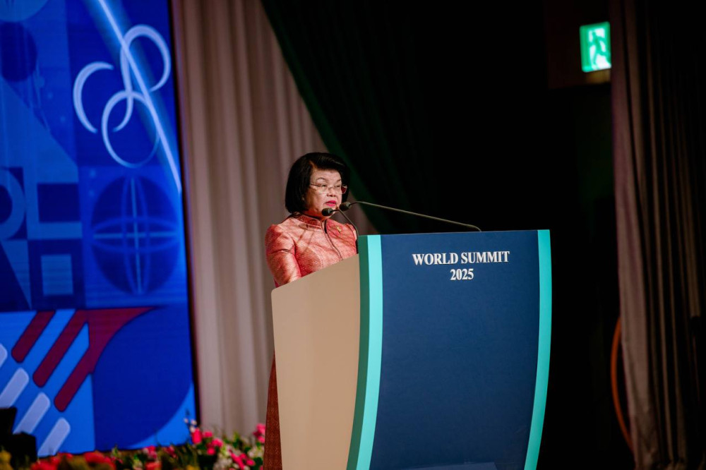 ថ្លែងទៅកាន់កិច្ចប្រជុំកំពូលពិភពលោកឆ្នាំ២០២៥ (Universal Peace Federation World Summit 2025 ) នៅទីក្រុងសេអ៊ូល សាធារណរដ្ឋកូរ៉េ សម្តេចមហារដ្ឋសភាធិការធិបតី ឃួន សុដារី ប្រធានរដ្ឋសភានៃព្រះរាជាណាចក្រកម្ពុជា បានលើកឡើងថា«សន្តិភាពគឺពិបាកក្នុងការកសាង ហើយរឹតតែពិបាកក្នុងការថែរក្សា និងធានានិរន្តភាព » និងបានគូសបញ្ជាក់បន្ថែមទៀតថា សន្តិភាពដែលស្ថិតស្ថេរយូរអង្វែងត្រូវតែ មានការចូលរួមជជែកពិភាក្សា និងធានានូវនិរន្តរភាព។