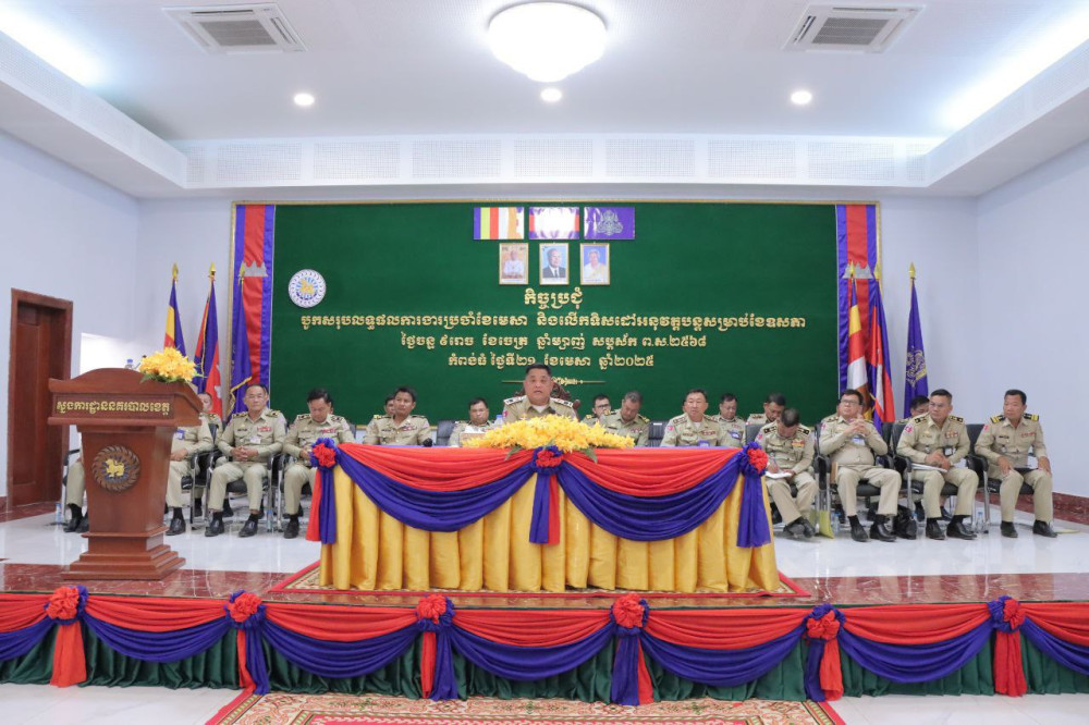 AKPកំពង់ធំថ្ងៃទី២២ ខែមេសា ឆ្នាំ ២០២៥--ឧត្តមសេនីយ៍ទោ ហេង សុផល ស្នងការនគរបាលខេត្តកំពង់ធំដាក់គោលការណ៍០៨ចំណុចដល់កងកម្លាំងនគរបាលជាតិសំដៅរក្សាបានសន្តិសុខសណ្ដាប់ធ្នាប់ជូនសង្គមជាតិនិងប្រជាពលរដ្ឋ ក្នុងឱកាសអញ្ជើញដឹកនាំកិច្ចប្រជុំ បូកសរុបលទ្ធផលការងារប្រចាំខែមេសានិងលើកទិសដៅអនុវត្តបន្តសម្រាប់ខែឧសភា ឆ្នាំ២០២៥។