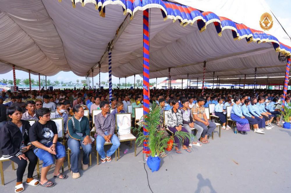 AKP កំពង់ស្ពឺ ថ្ងៃទី២២ ខែមេសា ឆ្នាំ២០២៥-- ឯកឧត្តម ហ៊ុន ម៉ានី ឧបនាយករដ្ឋមន្រ្តី រដ្ឋមន្រ្តីក្រសួងមុខងារសាធារណៈ និងជាប្រធានក្រុមការងាររាជរដ្ឋាភិបាលចុះមូលដ្ឋានខេត្តកំពង់ស្ពឺ និងឯកឧត្តម សាយ សំអាល់ ឧបនាយករដ្ឋមន្ត្រី រដ្ឋមន្ត្រីក្រសួងរៀបចំដែនដី នគរូបនីយកម្ម និងសំណង់ នាព្រឹកថ្ងៃទី២២ ខែមេសា ឆ្នាំ២០២៥ បានអញ្ជើញជាអធិបតីដ៏ខ្ពង់ខ្ពស់ក្នុងពិធីប្រកាសខេត្តកំពង់ស្ពឺបញ្ចប់ការវាស់វែងដីធ្លីមានលក្ខណៈជាប្រព័ន្ធ និងចែកបណ្ណកម្មសិទ្ធិដីធ្លី ជូនប្រជាពលរដ្ឋ ចំនួន ៥៩ ៩៥៣បណ្ណ ស្ថិតនៅភូមិសាស្ត្រខេត្តកំពង់ស្ពឺ ដោយមានការអញ្ជើញចូលរួមពីសមាជិកព្រឹទ្ធសភា រដ្ឋសភា ឯកឧត្តម លោកជំទាវ លោក លោកស្រី ក្រុមការងាររាជរដ្ឋាភិបាលចុះជួយមូលដ្ឋានខេត្ត ក្រុង ស្រុក នៃខេត្តកំពង់ស្ពឺ ក្រុមប្រឹក្សាខេត្ត គណៈអភិបាលខេត្ត ក្រុង ស្រុក ខណ្ឌ ថ្នាក់ដឹកនាំ និងមន្រ្តីរាជការចំណុះរដ្ឋបាលខេត្តគ្រប់លំដាប់ថ្នាក់ ក្រុមការងារវាស់វែងដីធ្លីរបស់មន្ទីររៀបចំដែនដី នគរូបនីយកម្ម និងសំណង់រាជធានីភ្នំពេញ និងខេត្តកំពង់ស្ពឺ ព្រមទាំងបងប្អូនប្រជាពលរដ្ឋស្រុកសំរោងទង ស្រុកសាមគ្គីមុនីជ័យ និងក្រុងច្បារមន សរុបចំនួនប្រមាណ ៣,២៦០នាក់ ក្នុងបរិវេណមណ្ឌលកីឡដ្ឋានស្ថិតនៅភូមិតាមុល សង្កាត់ច្បារមន ក្រុងច្បារមន ខេត្តកំពង់ស្ពឺ។