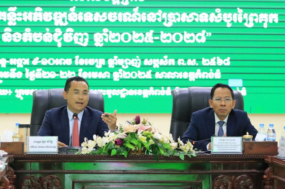 AKP កំពង់ធំ ថ្ងៃទី២២ ខែមេសា ឆ្នាំ២០២៥-- ឯកឧត្តម ណេប សាមុត រដ្ឋលេខាធិការទីស្តីការគណៈរដ្ឋមន្ត្រី និងជាប្រធានក្រុមការងារសិក្សា និងអនុវត្តគម្រោងលើកកម្ពស់ភាពទាក់ទាញទេសចរណ៍នៅប្រាសាទសំបូរព្រៃគុក និងតំបន់ជុំវិញ ឯកឧត្តម នួន ផារ័ត្ន អភិបាលខេត្តកំពង់ធំ បានអញ្ជើញដឹកនាំសិក្ខាសាលាពិគ្រោះយោបល់លើសេចក្តីព្រាងវិធានការគន្លឹះអភិវឌ្ឍន៍ទេសចរណ៍នៅ "ប្រាសាទសំបូរព្រៃគុក និងតំបន់ជុំវិញ ឆ្នាំ២០២៥-២០២៨" នាព្រឹកថ្ងៃទី២២ ខែមេសា ឆ្នាំ២០២៥ នៅសាលប្រជុំសាលាខេត្តកំពង់ធំ។