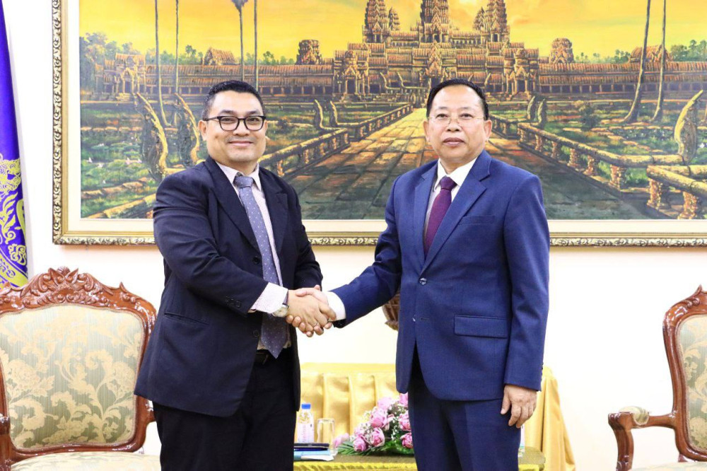 AKP ភ្នំពេញ ថ្ងៃទី២៣ ខែមេសា ឆ្នំា២០២៥-- ឯកឧត្តម ចាយ បូរិន រដ្ឋមន្រ្តីក្រសួងធម្មការ និងសាសនា អនុញ្ញាតឱ្យលោក ហ្សាណេស អ៊ីម៉ានូអែល ជីនធីង (Janes Imanuel Ginting) នាយកអង្គការទស្សនៈពិភពលោកអន្តរជាតិប្រចាំប្រទេសកម្ពុជា ដឹកនាំគណៈប្រតិភូ ចូលជួបសម្តែងការគួរសម និងពិភាក្សាការងារ នាព្រឹកថ្ងៃទី២៣ ខែមេសា ឆ្នាំ២០២៥ នៅទីស្តីការក្រសួង។