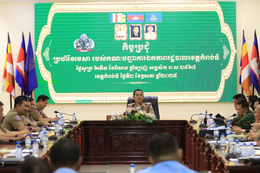AKP កំពង់ធំ ថ្ងៃទី០៣ ខែឧសភា ឆ្នាំ២០២៥ -- ឯកឧត្តម នួន ផារ័ត្ន អភិបាលខេត្ត និងជាប្រធានគណៈបញ្ជាការឯកភាពរដ្ឋបាលខេត្តកំពង់ធំ បានក្រើនរំលឹកដល់កងកម្លាំងមានសមត្ថកិច្ច និងមន្ត្រីជំនាញទាំងអស់ខិតខំបន្តអនុវត្តគោលនយោបាយភូមិឃុំសង្កាត់មានសុវត្ថិភាពទប់ស្កាត់ និងបង្ក្រាបឱ្យបានដាច់ខាតនូវបទល្មើសធនធានធម្មជាតិមិនឱ្យកើតឡើងបន្តទៀតនៅក្នុងភូមិសាស្រ្តខេត្តកំពង់ធំ។