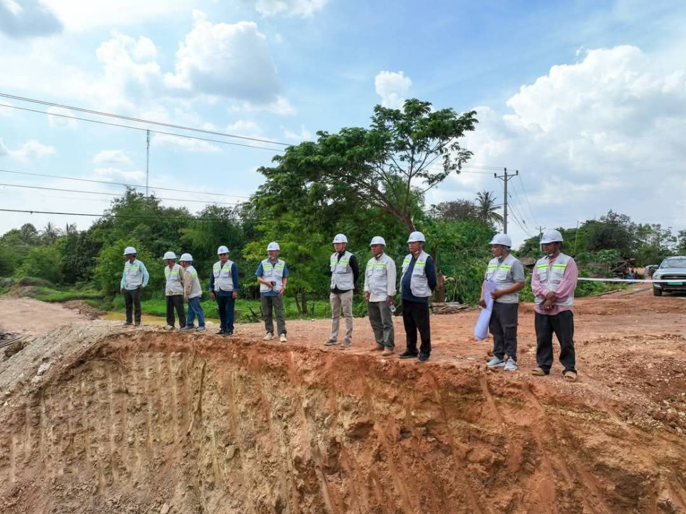 AKPភ្នំពេញ ថ្ងៃទី០៥ ខែឧសភា ឆ្នាំ២០២៥ -- លោក ថាំង វីយុទ្ធដា ប្រធាននាយកដ្ឋានវិស្វកម្ម ក្នុងនាមតំណាងឯកឧត្តម ថោ ជេដ្ឋា រដ្ឋមន្ត្រីក្រសួងធនធានទឹក និងឧតុនិយម បានដឹកនាំមន្ត្រីបច្ចេកទេសក្រសួង ចុះពិនិត្យជាក់ស្តែងវឌ្ឍនភាពគម្រោងជួសជុលទំនប់អាងទឹកទំនប់ថ្មី ស្ថិតក្នុងឃុំត្រពាំងតាវ ស្រុកអន្លង់វែង ខេត្តឧត្តរមានជ័យ។