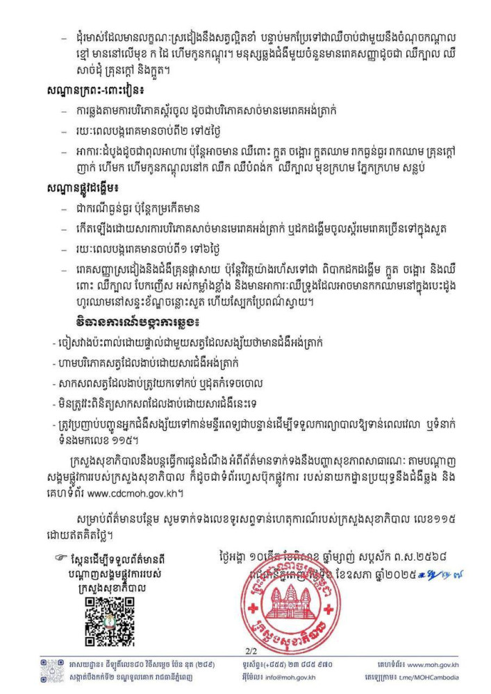 សេចក្តីប្រកាសព័ត៌មាន ស្តីពីការការពារខ្លួនពីការឆ្លងបាក់តេរីអង់ត្រាក់ (Bacillus Anthracis)