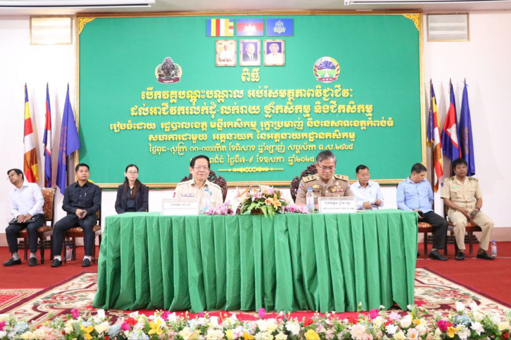 ឯកឧត្តម ឡោ រស្មី អនុរដ្ឋលេខាធិការក្រសួងកសិកម្ម រុក្ខាប្រមាញ់ និងនេសាទ តំណាងដ៏ខ្ពង់ខ្ពស់ឯកឧត្តម ឌិត ទីណា រដ្ឋមន្ត្រីក្រសួងកសិកម្ម រុក្ខាប្រមាញ់ និងនេសាទ លោកស្រី គិត វិសិដ្ឋកញ្ញា អគ្គនាយករងក្រសួងកសិកម្មលោក ព្រឹម រដ្ឋា អភិបាលរងខេត្តកំពង់ធំ លោក ប៉ែន វណ្ណរិទ្ធ ប្រធានមន្ទីរកសិកម្ម រុក្ខាប្រមាញ់ និងនេសាទខេត្ត និងសមាជិកសមាជិកា បានអញ្ជើញចូលរួមក្នុងវគ្គបណ្ដុះបណ្ដាលអប់រំសមត្ថភាពវិជ្ជាជីវៈដល់អាជីវករលក់ដុំ លក់រាយ ថ្នាំកសិកម្ម និងជីកសិកម្ម ក្នុងភូមិសាស្ត្រខេត្តកំពង់ធំ មានរយៈពេល៣ថ្ងៃ ចាប់ពីថ្ងៃទី០៧-០៩ ខែឧសភា ឆ្នាំ២០២៥ នៅសាលប្រជុំសាលាខេត្តកំពង់ធំ នាព្រឹកថ្ងៃទី០៧ ខែឧសភា ឆ្នាំ២០២៥។