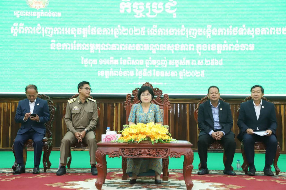 ការថ្លែងដូចនេះក្នុងឱកាសដែលលោកជំទាវវេជ្ជបណ្ឌិតរដ្ឋលេខាធិការអញ្ជើញក្នុងកិច្ចប្រជុំស្តីពីការជំរុញការអនុវត្តផែនការឆ្នាំ២០២៥ លើការងារជំរុញបង្កើនការថែទាំសុខភាពបឋម និងការកែលម្អគុណភាព សេវាមណ្ឌលសុខភាពក្នុងខេត្តកំពង់ចាម នាថ្ងៃទី០៧ ខែឧសភា ឆ្នាំ២០២៥នេះ នៅមន្ទីរសុខាភិបាលខេត្ត ដោយមានការចូលរួមពីលោក ហាន កុសល អភិបាលរងខេត្ត ឯកឧត្តមវេជ្ជបណ្ឌិត គីម សួភិរុណ ប្រធានមន្ទីរសុខាភិបាលខេត្តកំពង់ចាម និងលោក លោកអភិបាលក្រុង-ស្រុក លោក លោកស្រីមេឃុំ-ចៅសង្កាត់ ប្រធានមណ្ឌលសុខភាព និងអ្នកពាក់ព័ន្ធជាច្រើននាក់។
