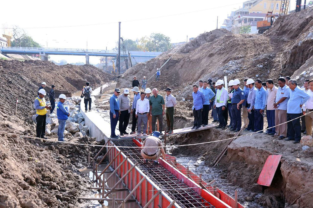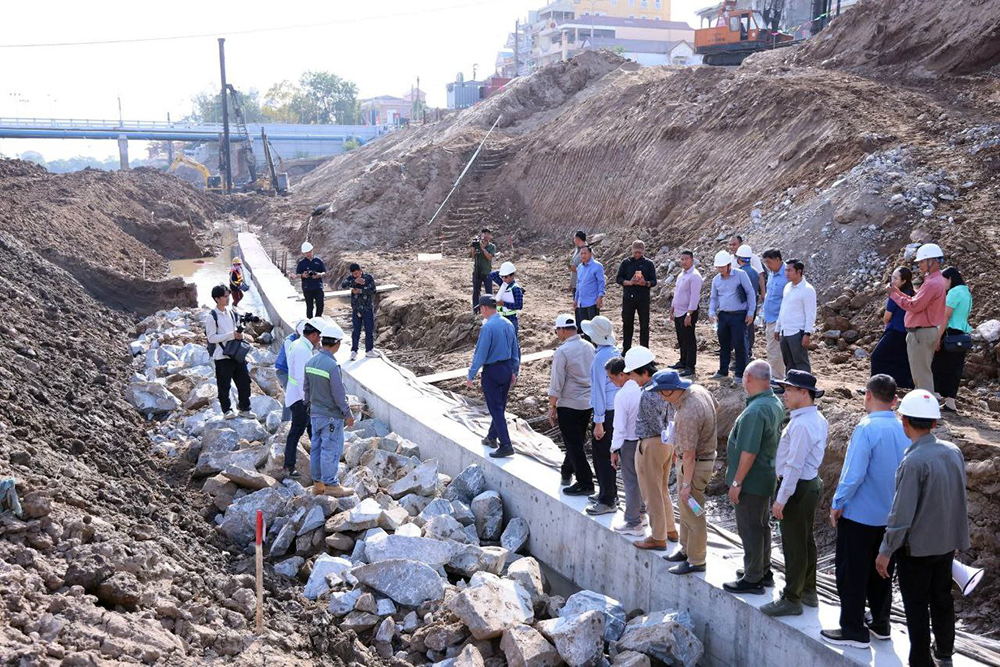 អាជ្ញាធរខេត្តកណ្ដាលចុះពិនិត្យការងារសាងសង់គម្រោងស្ថាបនាកែលម្អច្រាំងស្ទឹងព្រែកត្នោត ប៉ែកខាងត្បូងស្ទឹង ក្នុងក្រុងតាខ្មៅ