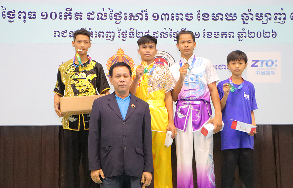 AKP ភ្នំពេញ ថ្ងៃទី០១ ខែកុម្ភៈ ឆ្នាំ២០២៦--ឯកឧត្តម កែ ប៊ុនខៀង រដ្ឋលេខាធិការក្រសួងអប់រំ យុវជន និងកីឡាបានលើកឡើងថា ការប្រកួតកីឡាវូស៊ូ ជ្រើសរើសជើងឯកថ្នាក់ជាតិ ប្រចាំឆ្នាំ២០២៥ ដែលបានបិទបញ្ចប់ដោយជោគជ័យ កាលពីថ្ងៃទី៣១ ខែមករា ឆ្នាំ២០២៦ នៅវិមានពហុកីឡដ្ឋានជាតិអូឡាំពិកពិតជាមានសារៈសំខាន់ណាស់ សម្រាប់កីឡាករ កីឡាការិនីបន្តការអភិវឌ្ឍជំនាញ និងបង្កើនគុណភាពបច្ចេកទេសរបស់ខ្លួន។
