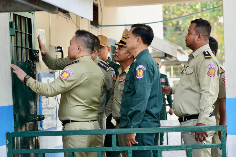 AKP ភ្នំពេញ ថ្ងៃទី១០ ខែកុម្ភៈ ឆ្នាំ២០២៦-- ឯកឧត្តម ឧត្តមអគ្គានុរក្សថ្នាក់លេខ១ ឈន សាណាត អគ្គនាយក នៃអគ្គនាយកដ្ឋានពន្ធនាគារ បានអញ្ជើញចុះពិនិត្យហេដ្ឋារចនាសម្ព័ន្ធ វឌ្ឍនភាពការងារ និងពង្រឹងលើការឆែកឆេរស្វែងរកវត្ថុហាមឃាត់ និងគ្រឿងញៀន នៅមណ្ឌលអប់រំកែប្រែទី៤ ខេត្តពោធិ៍សាត់ ដើម្បីពង្រឹងប្រសិទ្ធភាពការងារគ្រប់គ្រងពន្ធនាគារ។