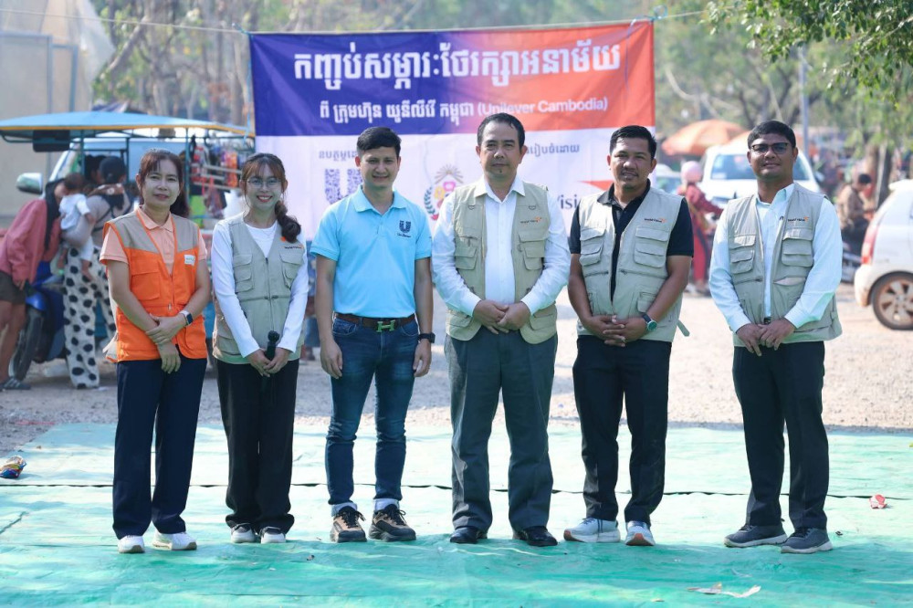 AKP ភ្នំពេញ ថ្ងៃទី១៣ ខែកុម្ភៈ ឆ្នាំ២០២៦-- អង្គការទស្សនៈពិភពលោក World Vision ក្នុងភាពជាដៃគូជាមួយក្រុមហ៊ុន យូនីលីវី កម្ពុជា និងក្រោមកិច្ចសហការជាមួយក្រសួងអភិវឌ្ឍន៍ជនបទ បាននាំយកនូវសម្ភារថែរក្សាអនាម័យ និងសុខភាពចាំបាច់សម្រាប់គ្រួសារភៀសសឹកចំនួន ១ ២០០ គ្រួសារ ដែលកំពុងស្នាក់នៅជំរំភៀសសឹក ក្នុងខេត្តឧត្តរមានជ័យ។