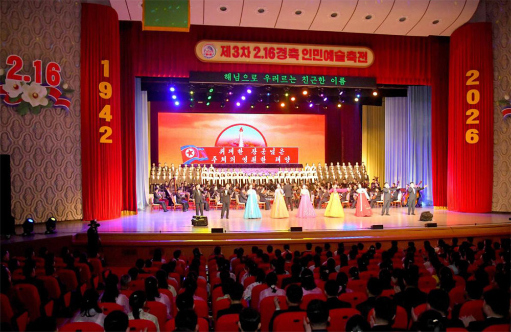 ពិធីបុណ្យសិល្បៈប្រជាជនលើកទីបីសម្រាប់ការអបអរសាទរថ្ងៃទី ១៦ ខែកុម្ភៈ ត្រូវបានប្រារព្ធឡើងនៅក្នុងរោងមហោស្រពនានាក្នុងតំបន់ផ្សេងៗគ្នានៃសាធារណរដ្ឋប្រជាធិបតេយ្យប្រជាមានិតកូរ៉េ ដើម្បីអបអរសាទរខួបលើកទី ៨៤ នៃកំណើតរបស់លោកប្រធាន គីម ជុងអ៊ីល។
