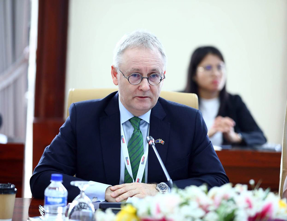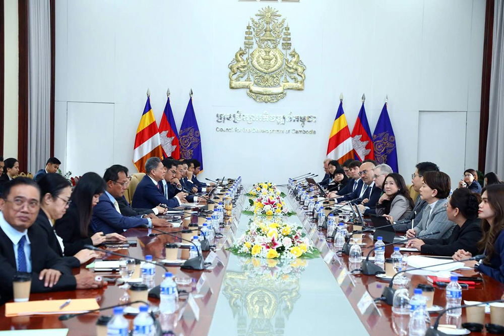 ក្នុងជំនួបសម្តែងការគួរសម និងពិភាក្សាការងារជាមួយគណៈប្រតិភូក្រុមប្រឹក្សាធុរកិច្ចអ៉ឺរ៉ុប-អាស៊ាន នៅថ្ងៃព្រហស្បត្តិ៍ ទី៥ ខែមីនា ឆ្នាំ២០២៦ នៅក្រុមប្រឹក្សាអភិវឌ្ឍន៍កម្ពុជា ឯកឧត្តម ស៊ុន ចាន់ថុល ឧបនាយករដ្ឋមន្ត្រី អនុប្រធានទី១ ក្រុមប្រឹក្សាអភិវឌ្ឍន៍កម្ពុជា បានអនុញ្ញាតឱ្យគណៈប្រតិភូក្រុមប្រឹក្សាធុរកិច្ច អ៉ឺរ៉ុប-អាស៊ាន EU-ABC) ដឹកនាំដោយ លោក Noel Clehane អនុប្រធានក្រុមប្រឹក្សាធុរកិច្ចអ៉ឺរ៉ុប-អាស៊ាន EU-ABC ជួបសម្តែងការគួរសម និងពិភាក្សាការងារ ក្រោមកិច្ចសម្របសម្រួលរបស់ លោក Tassilo Brinzer អនុប្រធានសភាពាណិជ្ជកម្មអ៉ឺរ៉ុប ប្រចាំនៅព្រះរាជាណាចក្រកម្ពុជា។