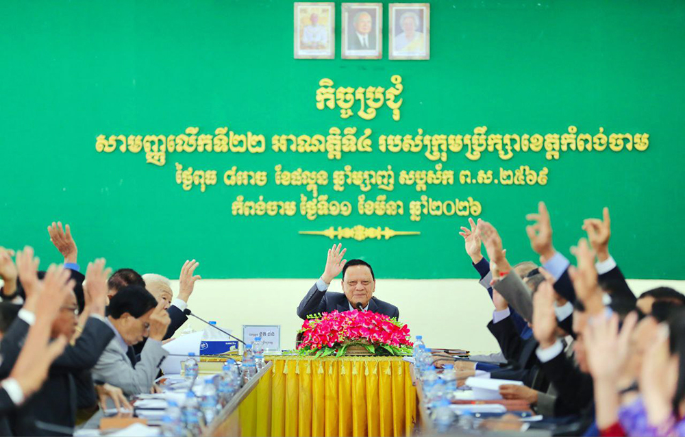 ឯកឧត្តមអភិបាលខេត្តថ្លែងបែបនេះនា ក្នុងកិច្ចប្រជុំសាមញ្ញលើកទី២២ អាណត្តិទី៤ របស់ក្រុមប្រឹក្សាខេត្តកំពង់ចាម ក្រោមអធិបតីភាព ឯកឧត្តម ខ្លូត ផន ប្រធានក្រុមប្រឹក្សាខេត្តកំពង់ចាមព្រឹកថ្ងៃទី១១ ខែមីនា ឆ្នាំ២០២៦នេះ។