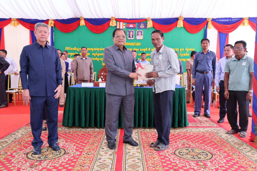 សូមបញ្ជាក់ថា ប័ណ្ណកម្មសិទ្ធិដីធ្លី ឬវិញ្ញាបនបត្រសម្គាល់ម្ចាស់អចលនវត្ថុចំនួន ២០ ៦១៥ប័ណ្ណ ត្រូវបានអាជ្ញាធរខេត្តកណ្ដាល និងមន្ទីរជំនាញចែកជូនប្រជាពលរដ្ឋចំនួន ២៣ភូមិ ក្នុងឃុំទួលព្រេជ ស្រុកអង្គស្នួល ដោយមានការអញ្ជើញចូលរួមពីឯកឧត្តម នូ សាខន ប្រធានក្រុមប្រឹក្សាខេត្ត និង ព្រមទាំងមានការអញ្ជើញចូលរួមផងដែរពីសំណាក់អាជ្ញាធរស្រុកអង្គស្នួល មន្ទីរជុំវិញខេត្ត និងប្រជាពលរដ្ឋជាច្រើនរូប។