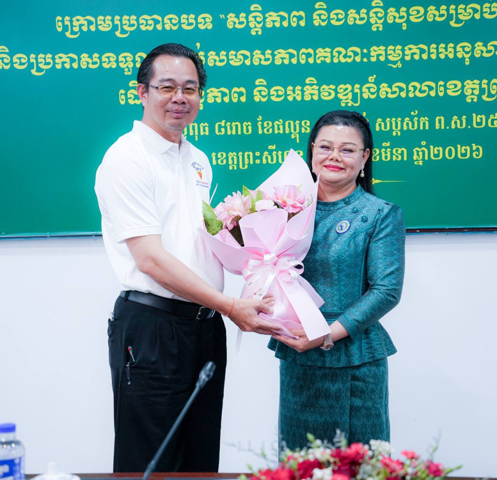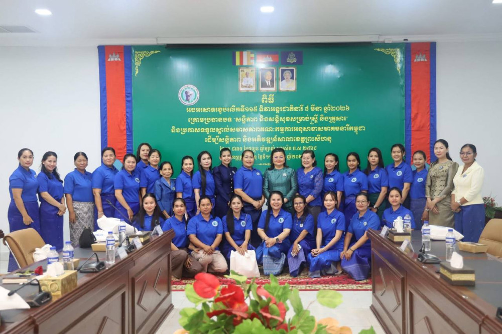 AKP ព្រះសីហនុ ថ្ងៃទី១២ ខែមីនា ឆ្នាំ២០២៦-- ស្ត្រីមិនត្រឹមតែជាអ្នកទទួលផលពីសុខសន្តិភាពប៉ុណ្ណោះទេ ប៉ុន្តែជាភ្នាក់ងារយ៉ាងសំខាន់ក្នុងការរួមចំណែកកសាង និងថែរក្សាសុខសន្តិភាព។ នេះជាការលើកឡើងរបស់លោកជំទាវ គីម សុភ័ក្ដ្រ ម៉ាង ស៊ីណេត ប្រធានកិត្តិយសសាខាសមាគមនារីកម្ពុជាដើម្បីសន្តិភាព និងអភិវឌ្ឍន៍ខេត្តព្រះសីហនុ បានអញ្ជើញជាអធិបតីក្នុងពិធីអបអរសាទរខួបលេីកទី១១៥ ទិវាអន្តរជាតិនារី ៨មីនា ឆ្នាំ២០២៦ ក្រោមប្រធានបទ "សន្ដិភាព និងសន្ដិសុខសម្រាប់ស្ដ្រី និងគ្រួសារ" និងការប្រកាសទទួលស្គាល់សមាសភាពគណៈកម្មាធិការសាខា សមាគមនារី ដើម្បីសន្ដិភាព និងអភិវឌ្ឍន៍ខេត្តព្រះសីហនុ នារសៀលថ្ងៃទី១១ ខែមីនា ឆ្នាំ២០២៦។