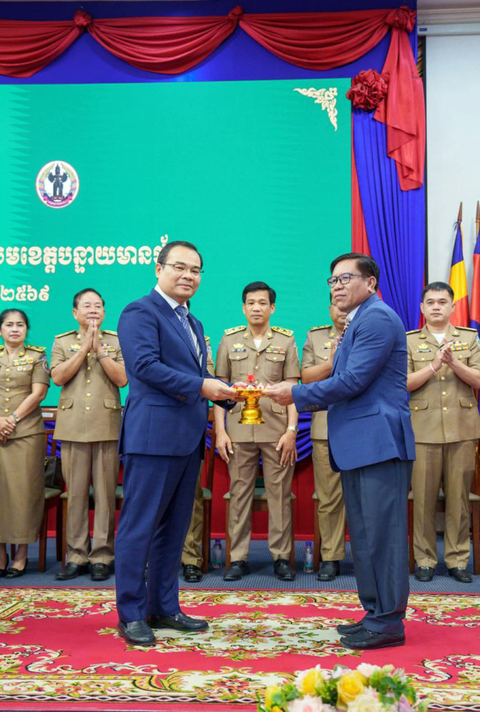 ឯកឧត្តម អ៊ុ រាត្រី អភិបាលនៃគណៈអភិបាលខេត្តបន្ទាយមានជ័យ បានសម្តែងនូវការអបអរសាទរយ៉ាងកក់ក្តៅចំពោះលោកប្រធានមន្ទីរថ្មី និងបានកោតសរសើរដល់មន្ទីរធនធានទឹក ដែលកន្លងមកតែងតែជាកម្លាំងចលករយ៉ាងសំខាន់ក្នុងការជួយសង្គ្រោះបងប្អូនប្រជាពលរដ្ឋពីគ្រោះទឹកជំនន់ និងការដោះស្រាយបញ្ហាខ្វះខាតទឹកស្រោចស្រព។