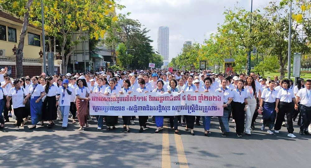 AKP ភ្នំពេញ ថ្ងៃទី១២ ខែមីនា ឆ្នាំ២០២៦-- ថ្លែងក្នុងព្រឹត្តិការណ៍ដើរ “ដើម្បីសន្តិភាពយូរអង្វែង សម្រាប់យើងទាំងអស់គ្នា” ក្នុងយុទ្ធនាការអបអរសាទរខួបលើកទី១១៥ ទិវាអន្តរជាតិនារី ៨មីនា ឆ្នាំ លោកជំទាវបណ្ឌិត ពេជ ចន្ទមុន្នី ហ៊ុនម៉ាណែត បានថ្លែងសាររំលេចពីតម្លៃមិនអាចកាត់ថ្លៃបាននៃសន្តិភាព និងតួនាទីដ៏សំខាន់របស់ស្ត្រីកម្ពុជាដែលមិនត្រឹមតែជាអ្នកថែរក្សាសុភមង្គលក្នុងគ្រួសារប៉ុណ្ណោះទេ ប៉ុន្តែគឺជាកម្លាំងចលករយ៉ាងរឹងមាំក្នុងការជំរុញសេដ្ឋកិច្ច និងសង្គមឱ្យកាន់តែរឹងមាំ។