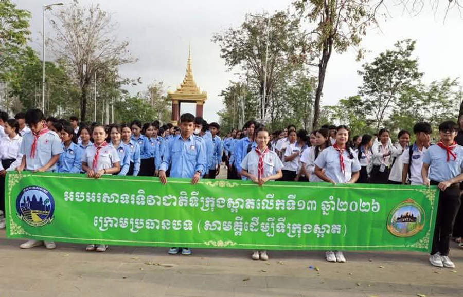 AKP ខេត្តកំពង់ឆ្នាំង ថ្ងៃទី១២ ខែមីនា ឆ្នាំ២០២៦-- លោក នៃ ចារី អភិបាលរងខេត្តកំពង់ឆ្នាំងបានរៀបចំពិធីអបអរសាទរ ទិវាជាតិ ទីក្រុងស្អាត លើកទី១៣ ឆ្នាំ២០២៦ ក្រោមប្រធានបទ «សាមគ្គី ដើម្បីទីក្រុងស្អាត»ពិធីនេះបានប្រារព្ធនៅថ្ងៃទី១២ ខែមីនា ឆ្នាំ២០២៦ នៅបរិវេណសួនសម្តេចចៅហ្វាវាំង ស្ថិតនៅក្រុងកំពង់ឆ្នាំង ខេត្តពង់ឆ្នាំង ដោយមានការចូលរួមពីមន្រ្តីរាជការ អាជ្ញាធរក្រុង សង្កាត់ កងកម្លាំងទាំងបីផ្នែក លោកគ្រូ អ្នកគ្រូ និងសិស្សានុសិស្សជាច្រើននាក់ផងដែរ។