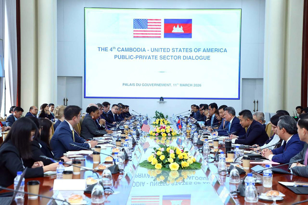 AKP ភ្នំពេញថ្ងៃទី១២ ខែមីនា ឆ្នាំ ២០២៦– ក្រុមប្រឹក្សាអភិវឌ្ឍន៍កម្ពុជា ដឹកនាំកិច្ចសន្ទនាលើកទី៤ រវាងរដ្ឋនិងវិស័យឯកជន កម្ពុជា-អាម៉េរិក ដើម្បីផ្តល់ឱកាសដល់វិនិយោគិនអាម៉េរិក ដែលកំពុងវិនិយោគនៅកម្ពុជាបានលើកឡើងពីបញ្ហាប្រឈមនានា និងស្វែងរកដំណោះស្រាយសមស្រប សំដៅពង្រឹង និងជំរុញកិច្ចសហប្រតិបត្តិការសេដ្ឋកិច្ច, ពាណិជ្ជកម្ម, និងការវិនិយោគ ។