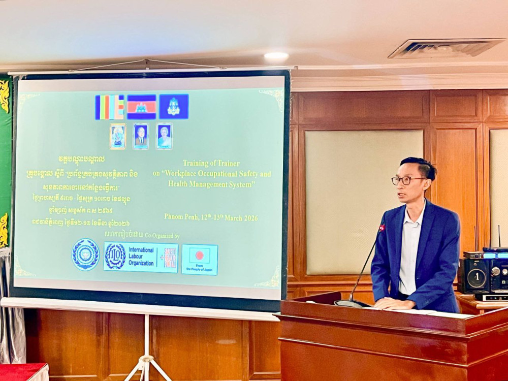 AKP ភ្នំពេញ ថ្ងៃទី១៣ ខែមីនា ឆ្នាំ ២០២៦--ក្រសួងការងារ និងបណ្តុះបណ្តាលវិជ្ជាជីវៈ សហការជាមួយគម្រោង ILO-Japan នៃអង្គការអន្តរជាតិខាងការងារ ដើម្បីបើកវគ្គបណ្តុះបណ្តាលគ្រូបង្គោលស្តីពី «ប្រព័ន្ធគ្រប់គ្រងសុវត្ថិភាព និងសុខភាពការងារនៅកន្លែងធ្វើការ»។