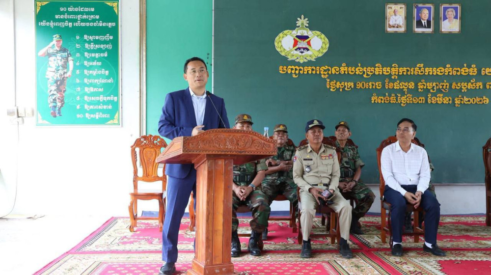 AKP កំពង់ធំ ថ្ងៃទី១៣ ខែមីនា ឆ្នាំ២០២៦--ឯកឧត្តម នួន ផារ័ត្ន អភិបាលខេត្ត ប្រធានគណៈបញ្ជាការឯកភាពរដ្ឋបាលខេត្តកំពង់ធំ នាព្រឹកថ្ងៃទី១៣ខែមីនាឆ្នាំ២០២៦ បានអញ្ជើញជួបសំណេះ សំណាលសាកសួរសុខទុក្ខ ឧបត្ថម្ភស្បៀងអាហារគ្រឿងឧបភោគបរិភោគ សម្ភារប្រើប្រាស់និងថវិកាមួយចំនួនជូនដល់កងកម្លាំងនៃបញ្ជាការដ្ឋានតំបន់ប្រតិបត្តិការសឹករងកំពង់ធំក្នុងឱកាសបុណ្យចូលឆ្នាំថ្មីប្រពៃណីជាតិខ្មែរ ដែលនិងឈានចូលមកដល់នៅពេលខាងមុខនេះនៅទីបញ្ជាការតំបន់ប្រតិបត្តិការសឹករងកំពង់ធំ យោធភូមិភាគទី៤។